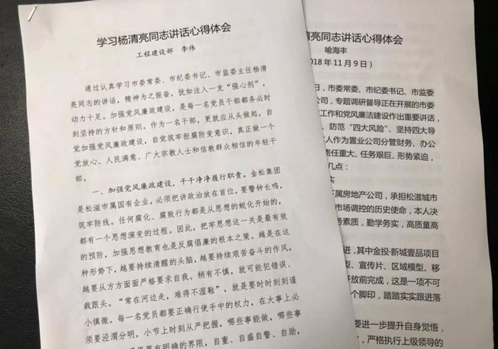 10月30日,市委常委、市紀委書記、市監委主任楊清亮同志到集團公司,專題調研督導正在開展的市委巡察工作,并就抓好巡察工作和黨風廉潔建設作出重要講話。會后,集團各部室、子公司紛紛召開專題會議、撰寫心得體會,學習落實市委常委、市紀委書記在金松集團巡察工作調研督導會上的講話精神。