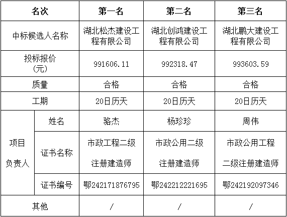 金松集團創衛環境整治項目(行政服務中心地塊場地平整)于2022年11月8日在湖北松滋金松投資控股集團有限公司開標室開標,并于2022年11月8日完成評標工作。根據評標委員會提交的評標報告,湖北松滋金松投資控股集團有限公司已經確認評標結果,現進行評標結果公示。