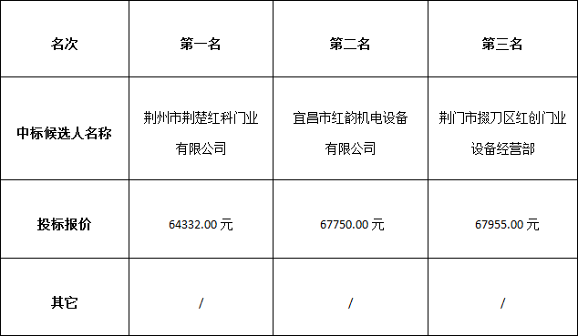 稻谷溪城市濕地公園配套設施設備(大門電動伸縮門)采購項目于2018年11月28日發布詢價邀請函,2018年12月5日在松滋市稻谷溪城市濕地公園會議室進行評標。根據評標小組提交的評標結論,湖北金投物業管理有限公司已經確認評標結果,現進行中標候選人公示。